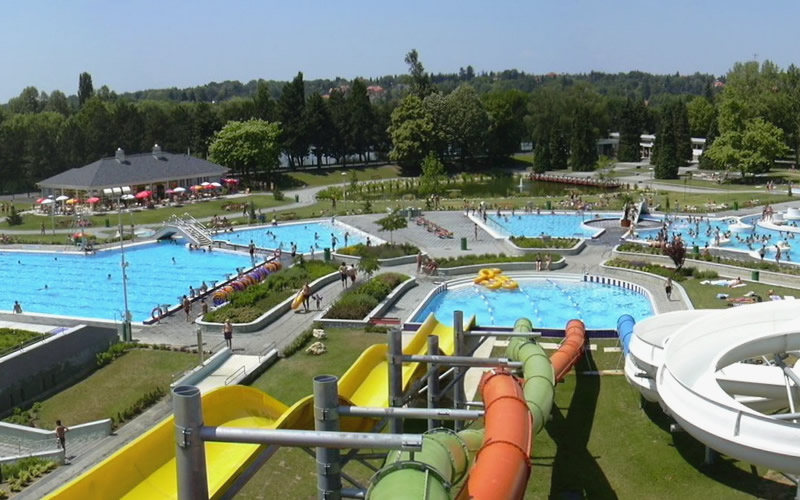 A fedett uszoda egész évben, a termálfürdő a nyári szezonban várja a vendégeket. Az uszodában feszített víztükrű, 50 méteres, nyolc sávos, kiváló minőségű úszómedence, tanmedence, lazítómedence, valamint női és férfi szauna vehető igénybe. A termálfürdő parkosított környezetben, különféle vízi élményelemekkel várja a fürdőzőket. A medencék felett lévő korszerű, UV-szűrős tetőszerkezet védi a vendégeket a nap káros sugaraitól.