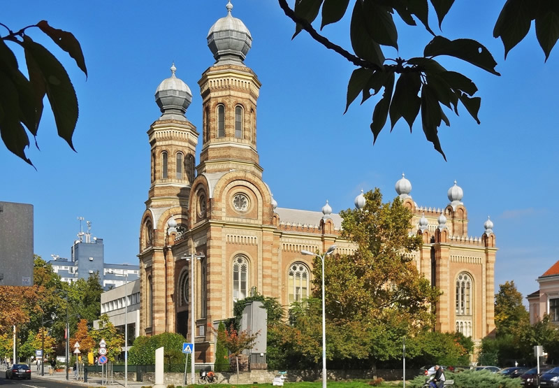 A Szombathelyi Zsinagóga Magyarország első tornyos zsinagógáinak egyike, melyet Ludwig Schöne bécsi építész tervei alapján 1880-ban építettek. Külső mérete: 23x36 méter. A monumentális, akkortájt modernnek számító zsidó templom stílusa a romantikus és az eklektikus építészeti stílusok elemeit ötvözi. Külső díszítőelemei a keleti világ hangulatát idézik. Külsejét jellegzetessé teszik a sokszögalakú hagymakupolás tornyai, sokszínű téglaburkolatai, csipkézett oromzatai, gótikus ablakai és kis bástyái. A 400 ember befogadására alkalmas és orgonával is felszerelt zsinagóga 1975 óta hangversenyteremként is működik – komolyzenei koncerteknek, rangos rendezvényeknek ad színteret.